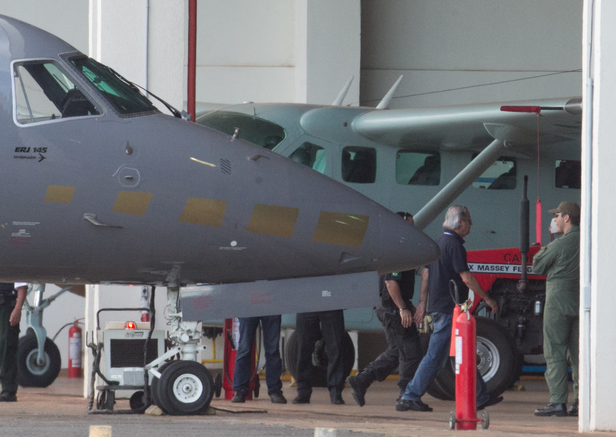Nove detidos desembarcaram no Aeroporto Juscelino Kubitschek, em Brasília, neste sábado (16) por volta das 17h45. Outros dois já estavam na capital federal, na Superintendência da PF, e também foram transferidos para a prisão.